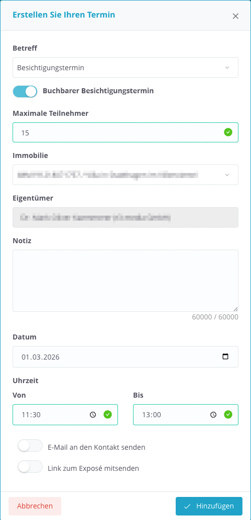Aktivieren Sie die Option „Buchbarer Besichtigungstermin“.