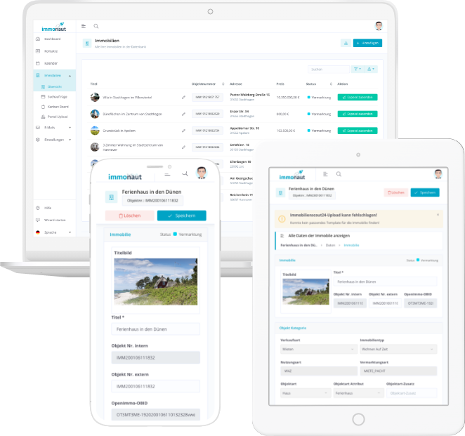 Immonaut ist die ideale digitale Lösung für die Verwaltung und Präsentation Ihrer Immobilien. Ganz gleich, ob Sie als Immobilienmakler tätig sind oder als privater Vermieter agieren - Immonaut unterstützt Sie dabei, all Ihre Immobilien effizient zu verwalten.